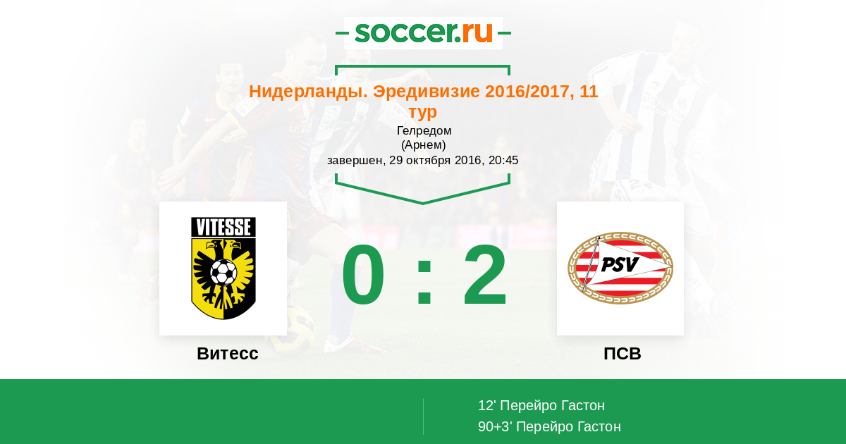 Протокол матча Витесс против ПСВ
