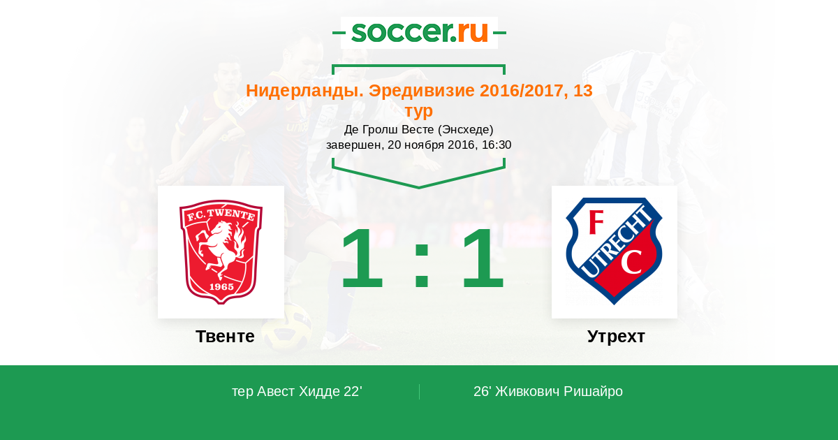 Протокол матча Твенте против Утрехт