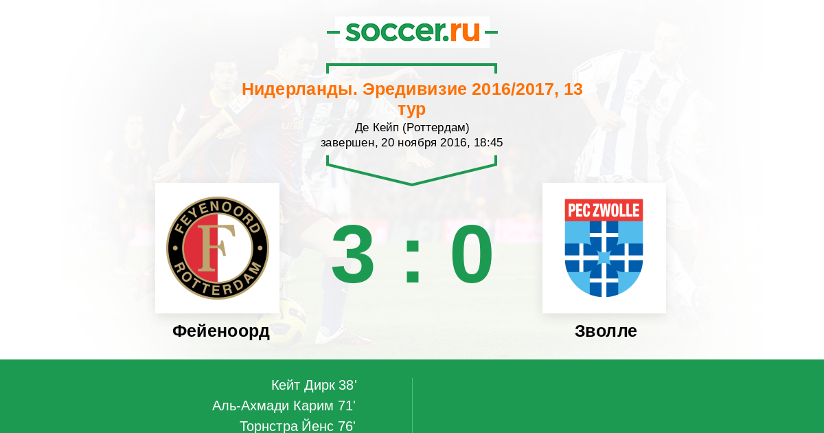 38' (1:0) Кейт Дирк (7) (Торнстра Йенс (28))