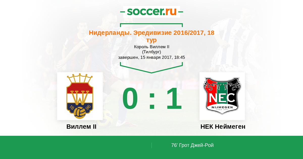 Протокол матча Виллем II против НЕК Неймеген