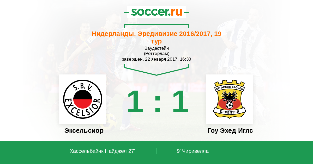 Протокол матча Эксельсиор против Гоу Эхед Иглс