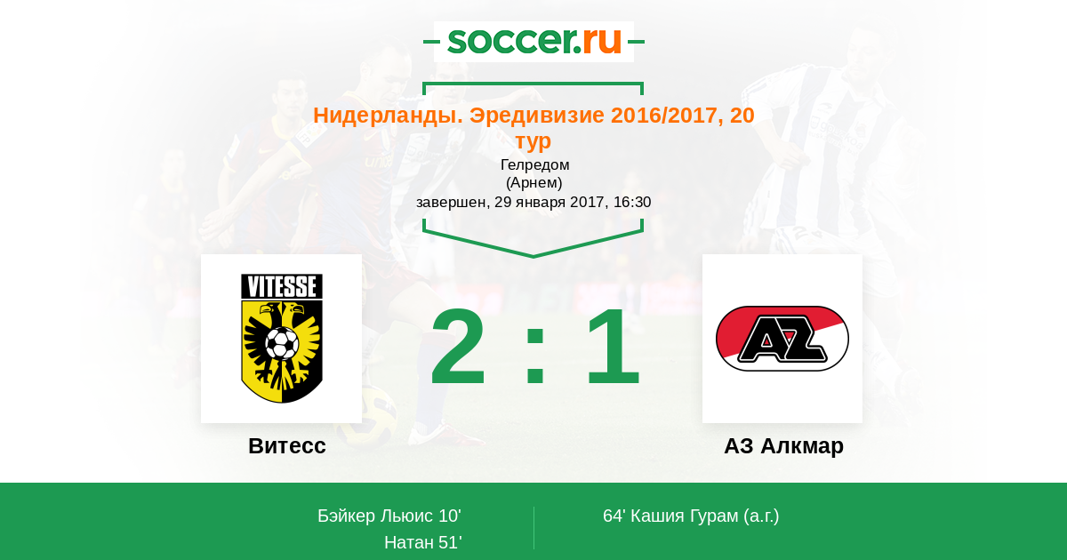 Протокол матча Витесс против АЗ Алкмар