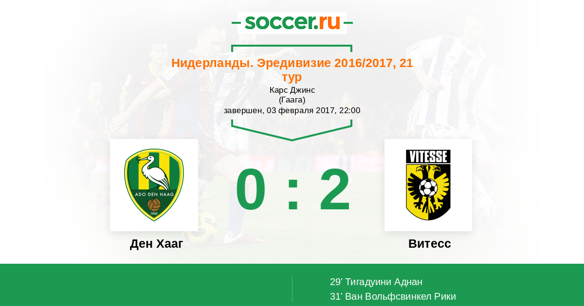 Протокол матча Ден Хааг против Витесс