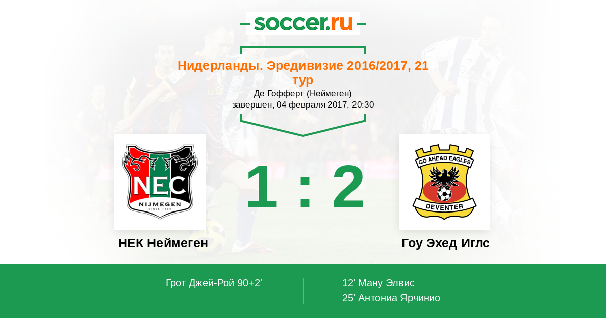Протокол матча НЕК Неймеген против Гоу Эхед Иглс