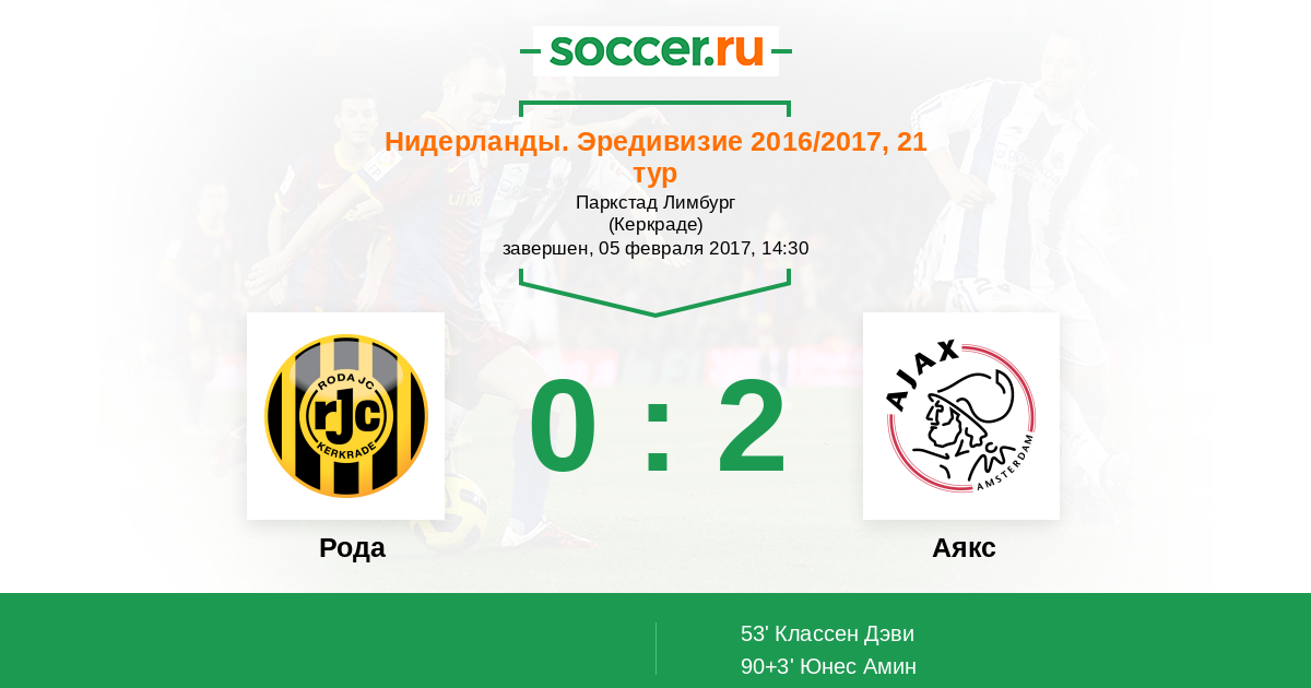 Протокол матча Рода против Аякс