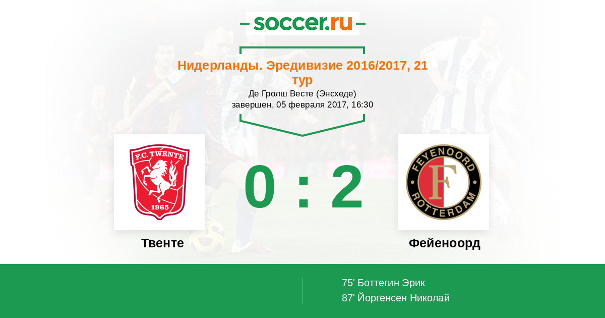 Протокол матча Твенте против Фейеноорд