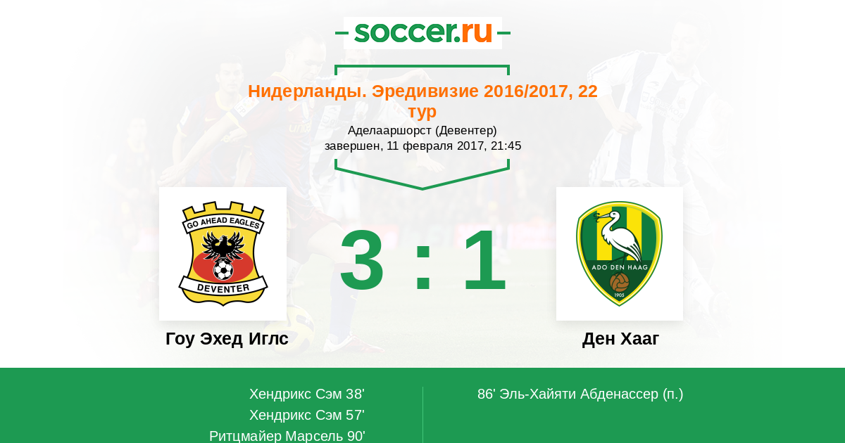 Протокол матча Гоу Эхед Иглс против Ден Хааг