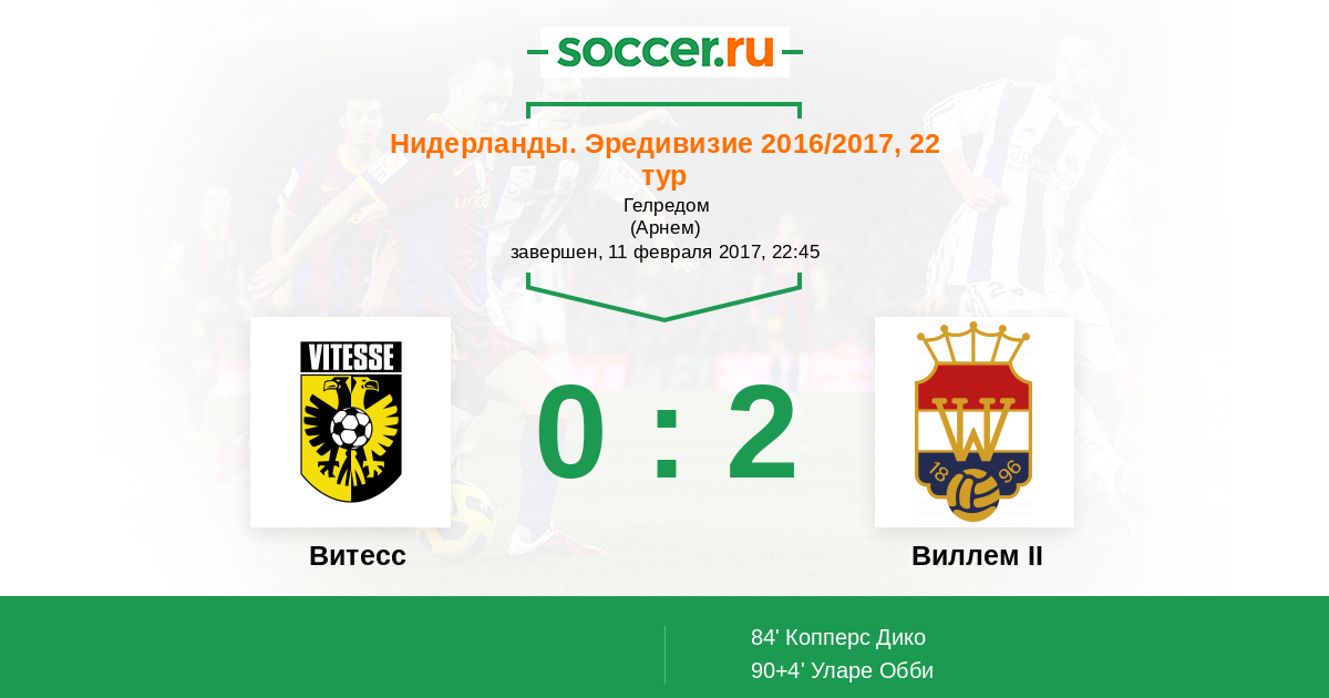Протокол матча Витесс против Виллем II