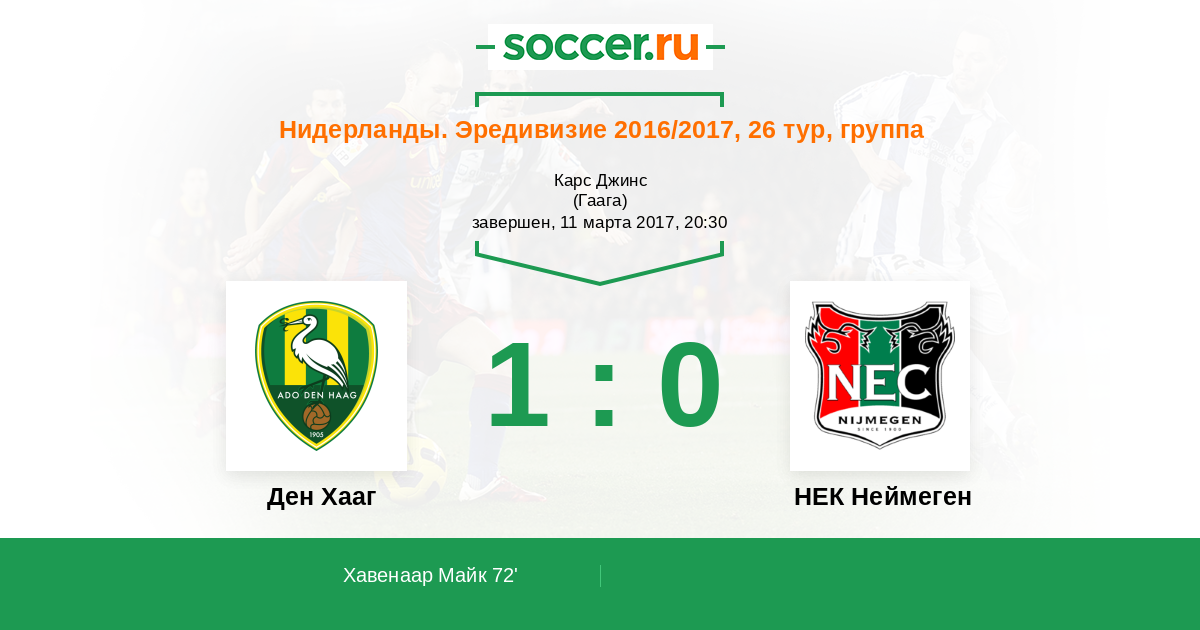 Протокол матча Ден Хааг против НЕК Неймеген