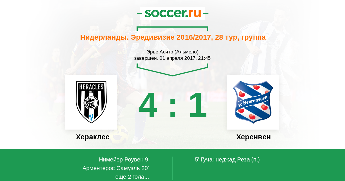 Протокол матча Хераклес против Херенвен
