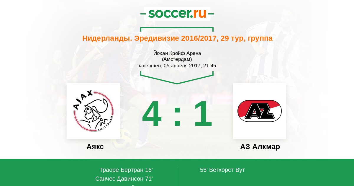 Протокол матча Аякс против АЗ Алкмар