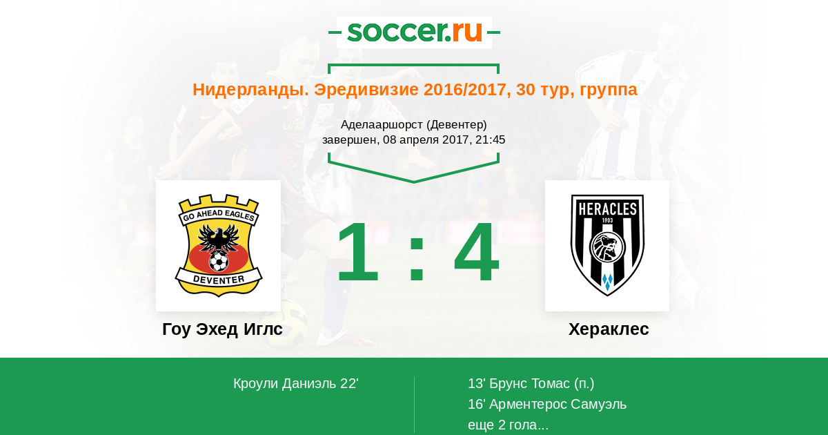 Протокол матча Гоу Эхед Иглс против Хераклес