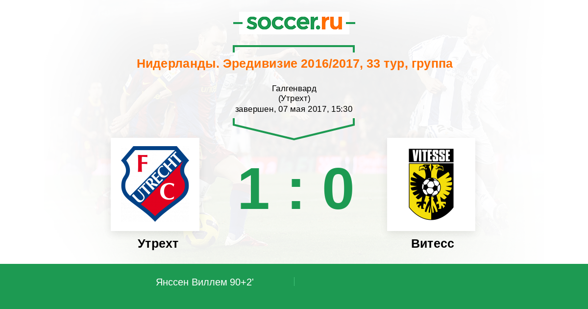 Протокол матча Утрехт против Витесс