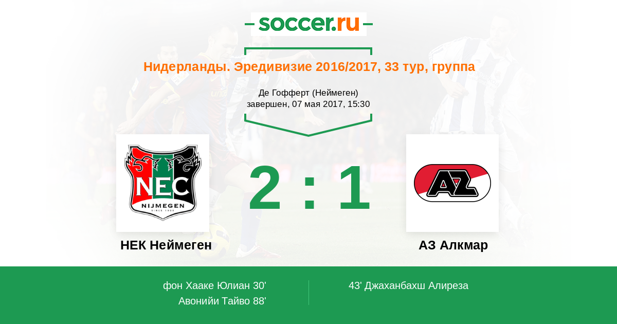 Протокол матча НЕК Неймеген против АЗ Алкмар