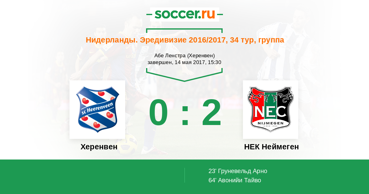 Протокол матча Херенвен против НЕК Неймеген