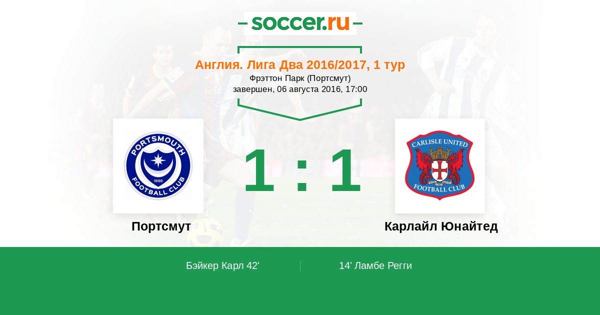Протокол матча Портсмут против Карлайл Юнайтед