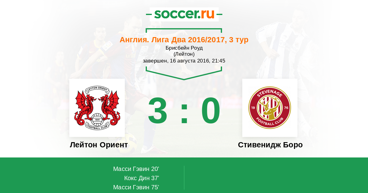 Протокол матча Лейтон Ориент против Стивенидж Боро