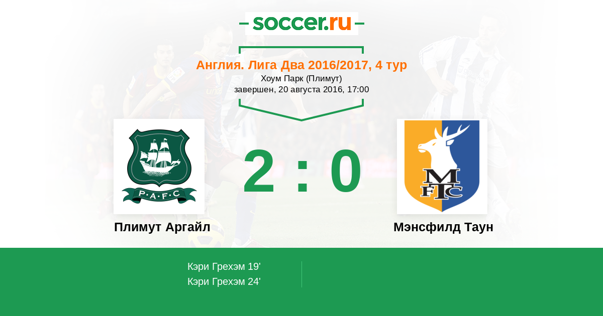 Протокол матча Плимут Аргайл против Мэнсфилд Таун