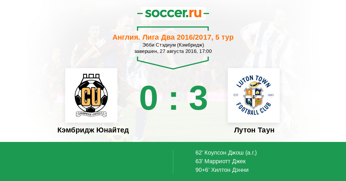 Протокол матча Кэмбридж Юнайтед против Лутон Таун