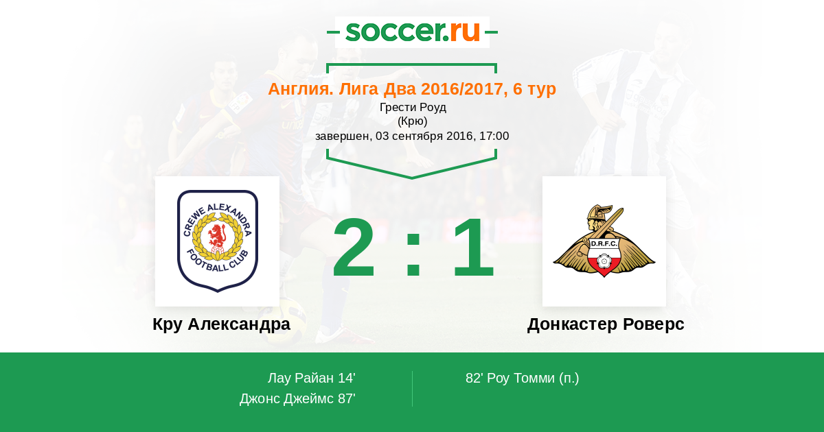 Протокол матча Кру Александра против Донкастер Роверс