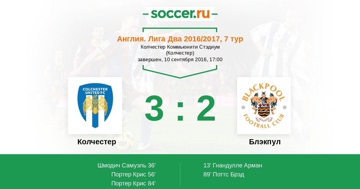 Протокол матча Колчестер против Блэкпул