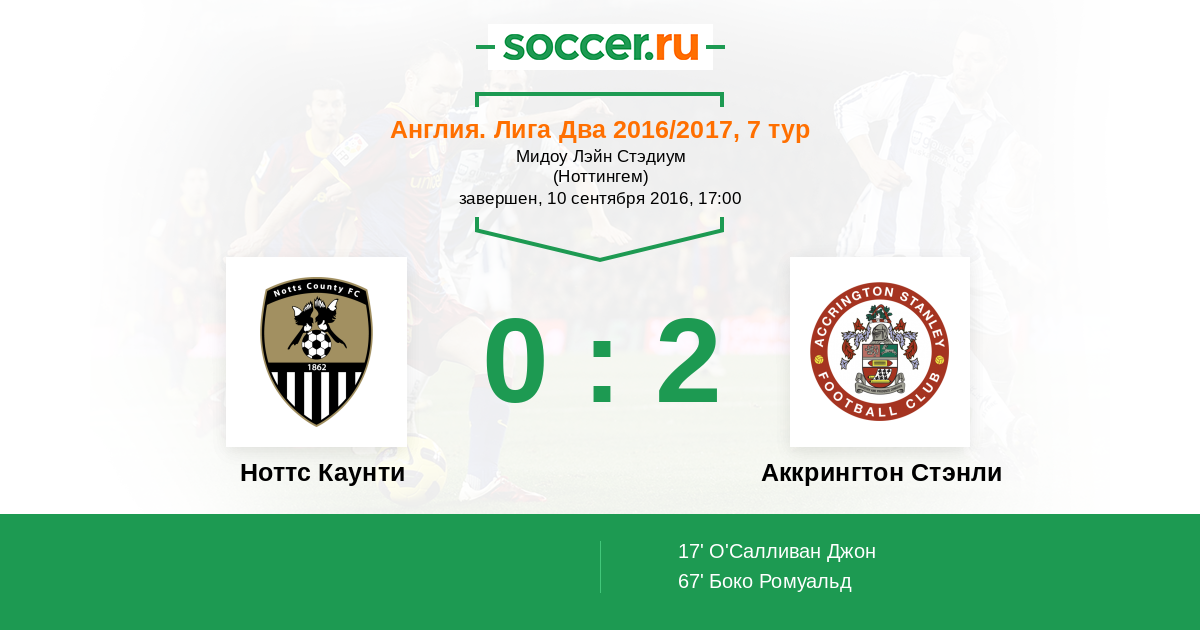 Протокол матча Ноттс Каунти против Аккрингтон Стэнли