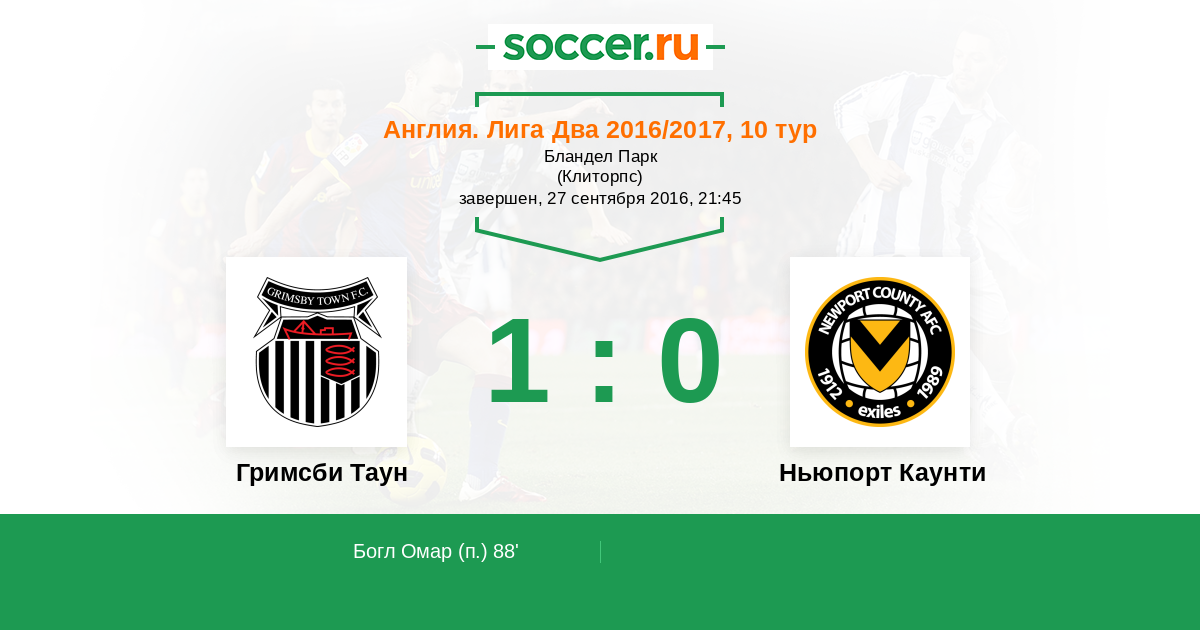 Протокол матча Гримсби Таун против Ньюпорт Каунти