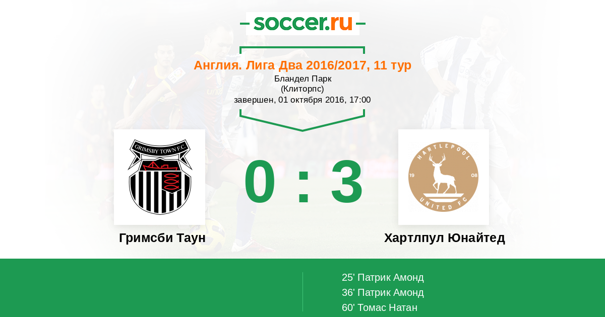 Протокол матча Гримсби Таун против Хартлпул Юнайтед