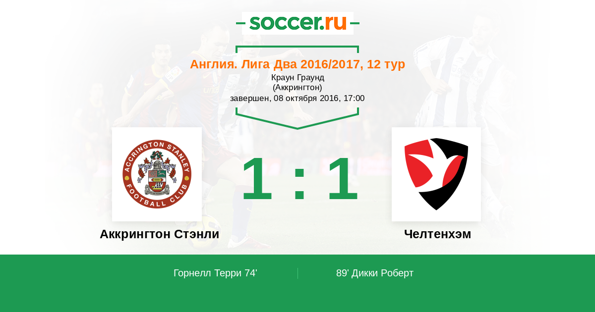 Протокол матча Аккрингтон Стэнли против Челтенхэм