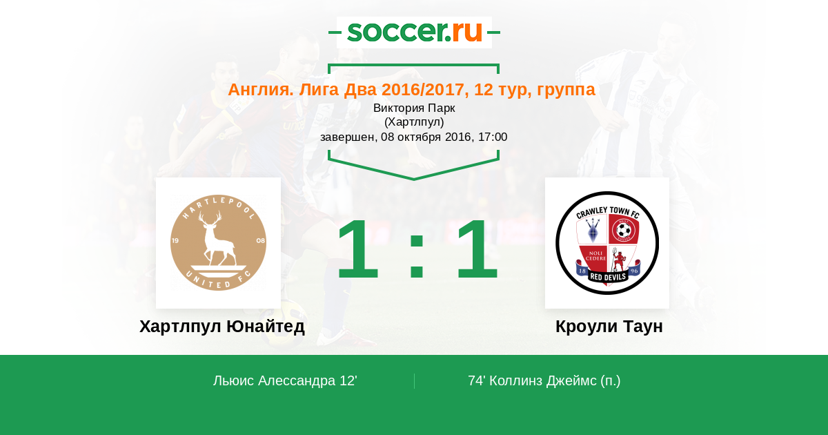 Протокол матча Хартлпул Юнайтед против Кроули Таун