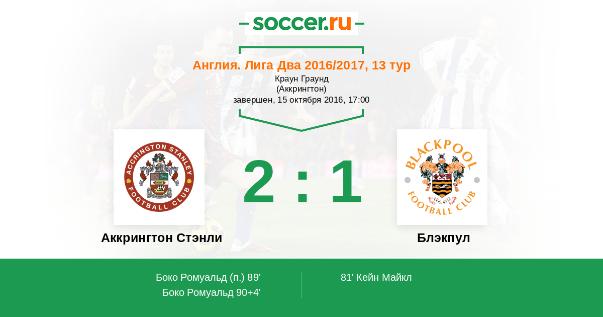 Протокол матча Аккрингтон Стэнли против Блэкпул