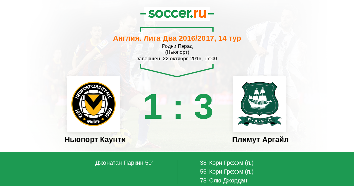 Протокол матча Ньюпорт Каунти против Плимут Аргайл