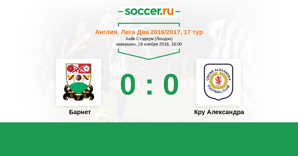 Протокол матча Барнет против Кру Александра