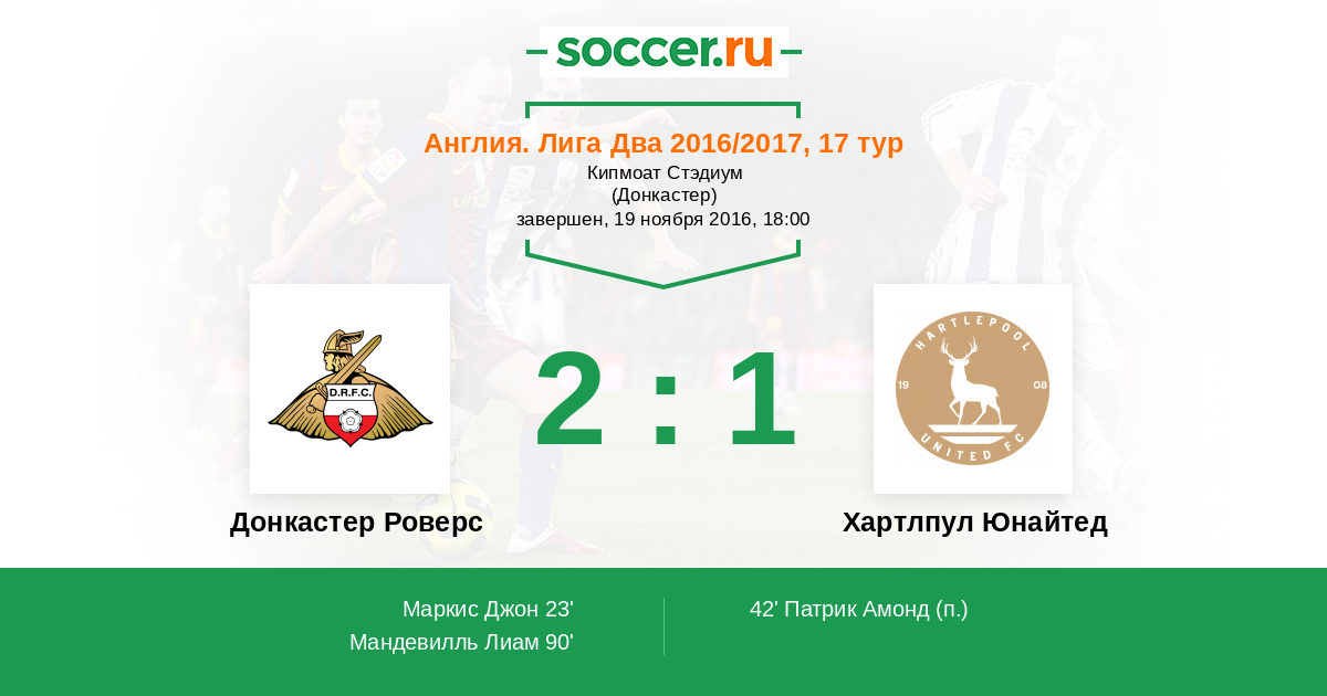 Протокол матча Донкастер Роверс против Хартлпул Юнайтед