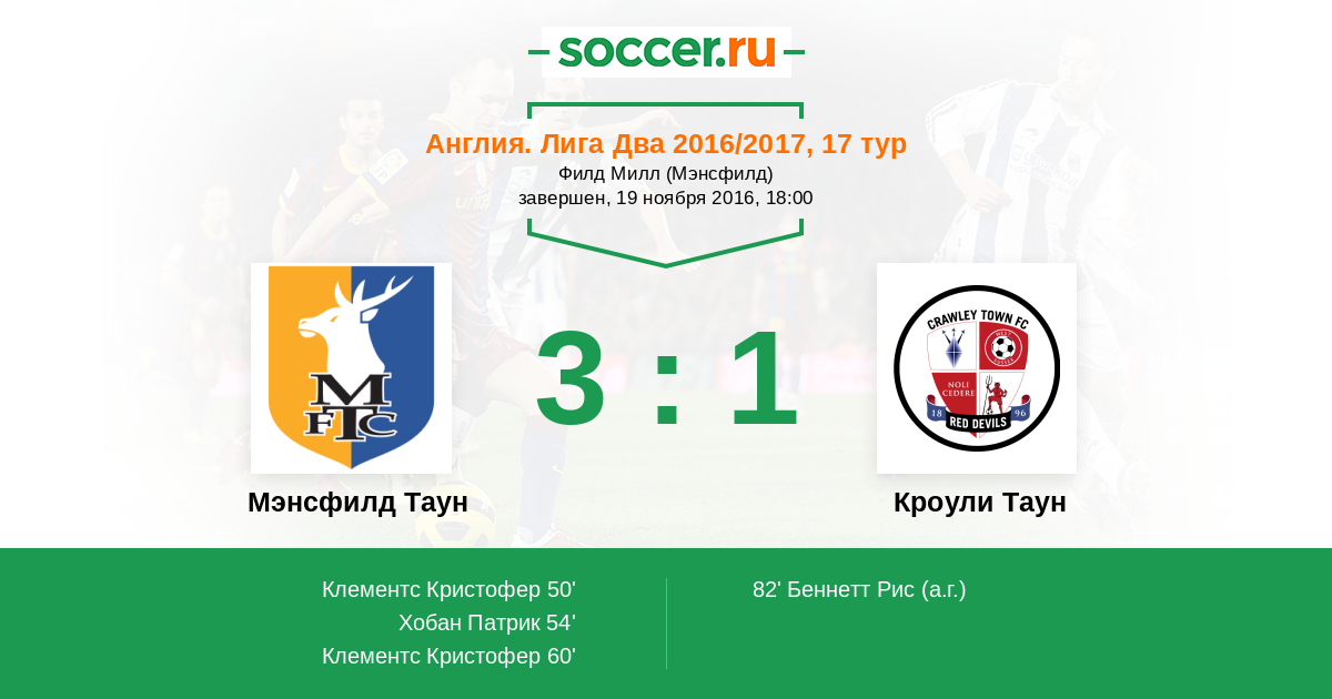Протокол матча Мэнсфилд Таун против Кроули Таун