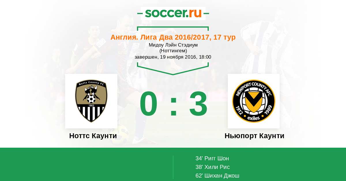 Протокол матча Ноттс Каунти против Ньюпорт Каунти