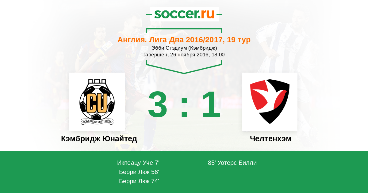 Протокол матча Кэмбридж Юнайтед против Челтенхэм
