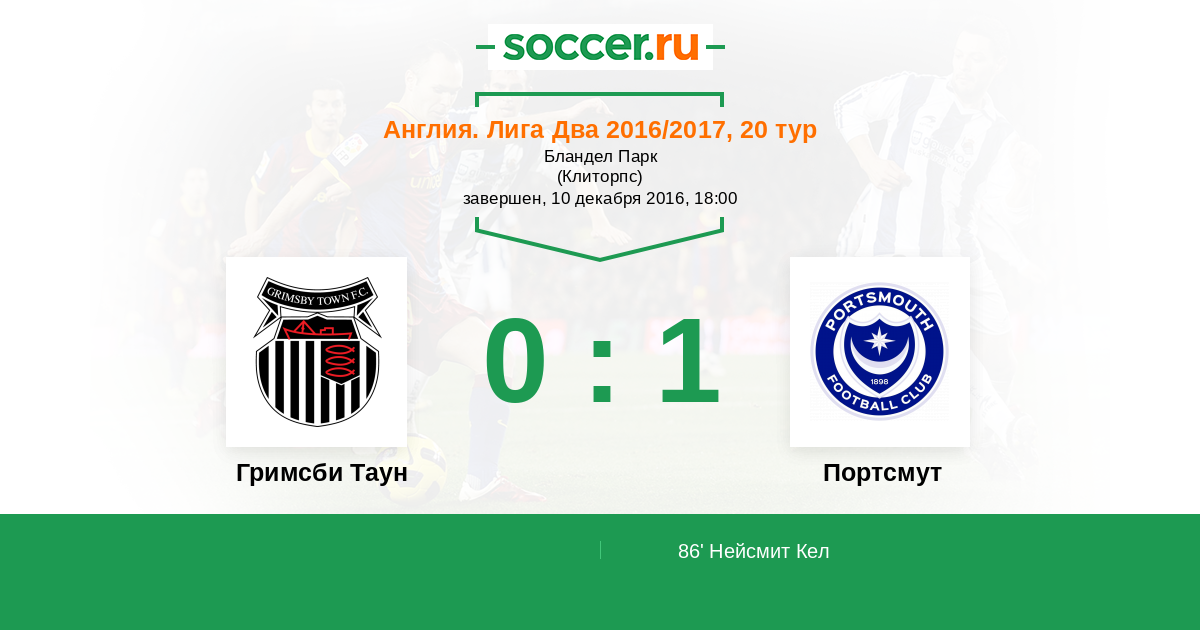 Протокол матча Гримсби Таун против Портсмут