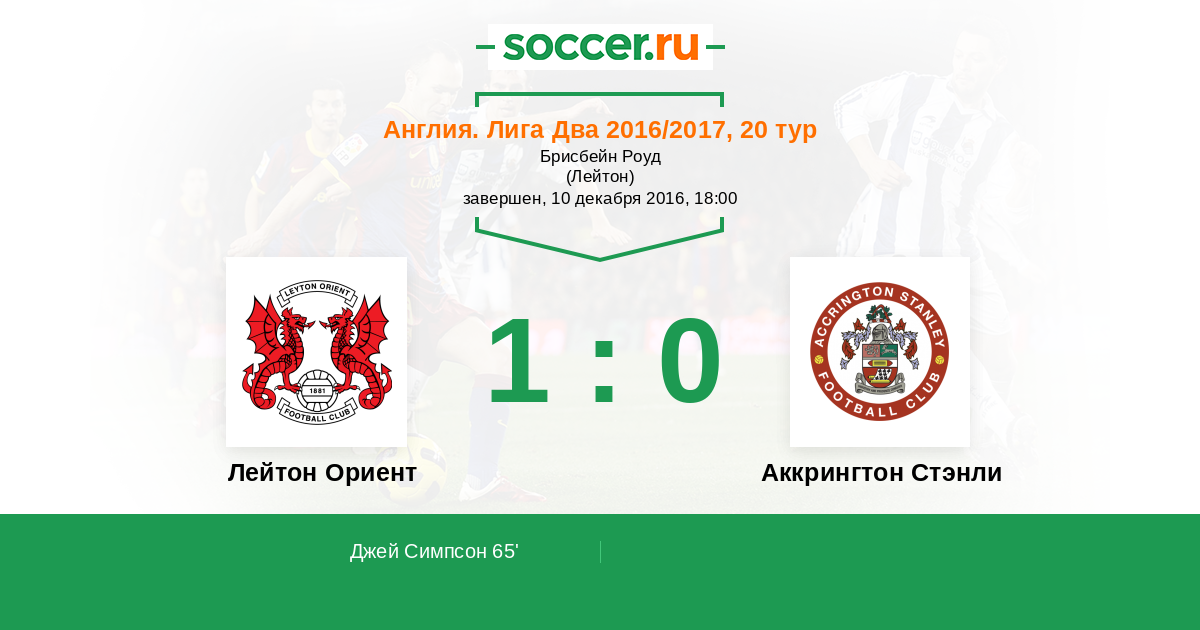 Протокол матча Лейтон Ориент против Аккрингтон Стэнли