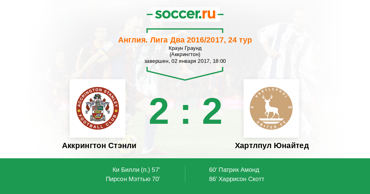 Протокол матча Аккрингтон Стэнли против Хартлпул Юнайтед