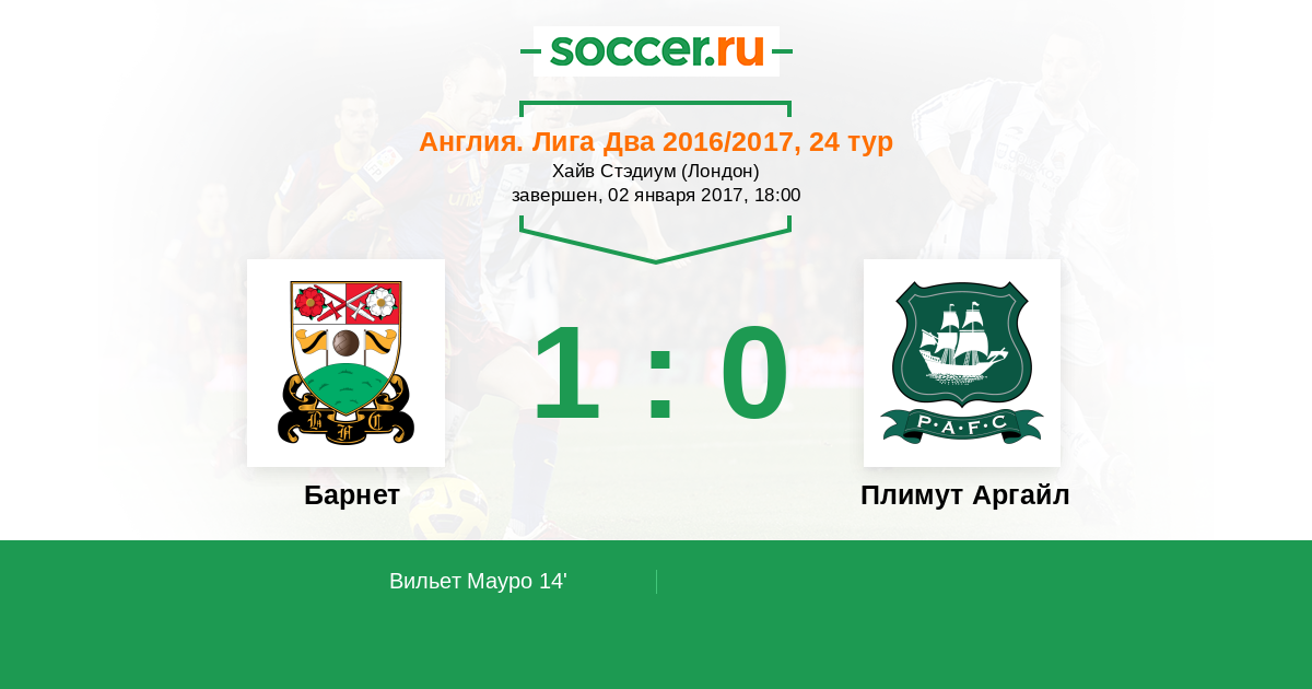 Протокол матча Барнет против Плимут Аргайл