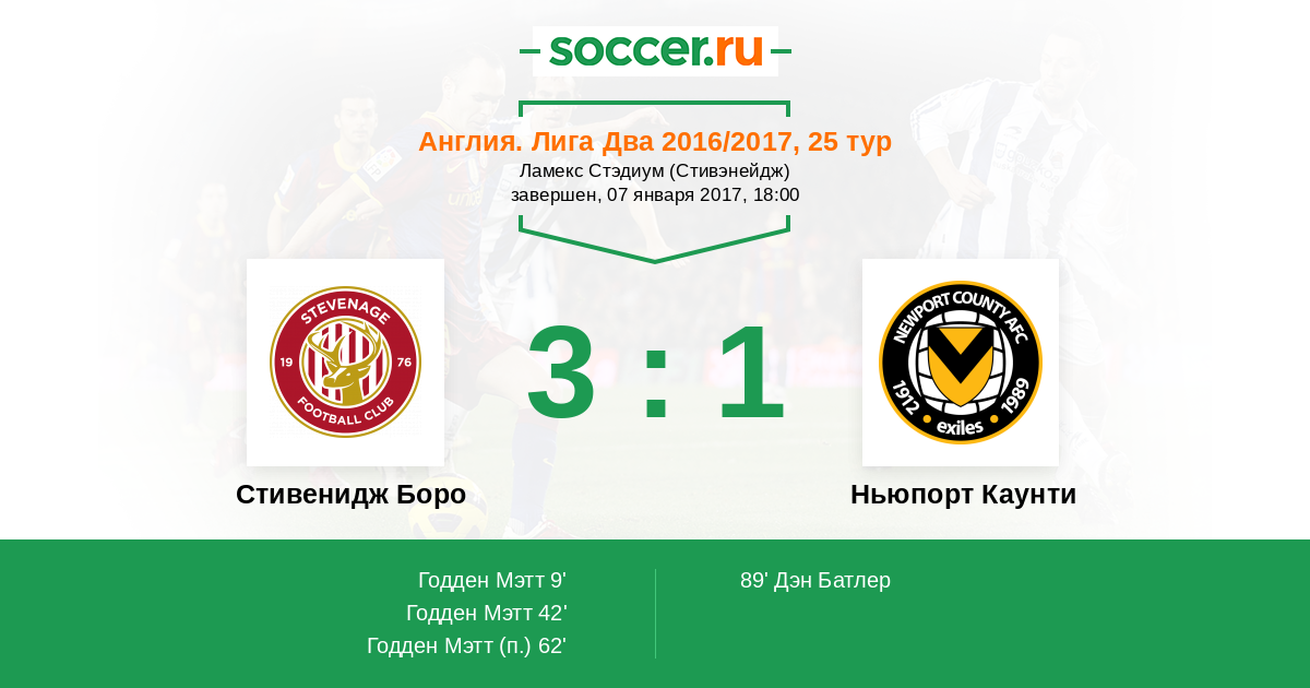Протокол матча Стивенидж Боро против Ньюпорт Каунти