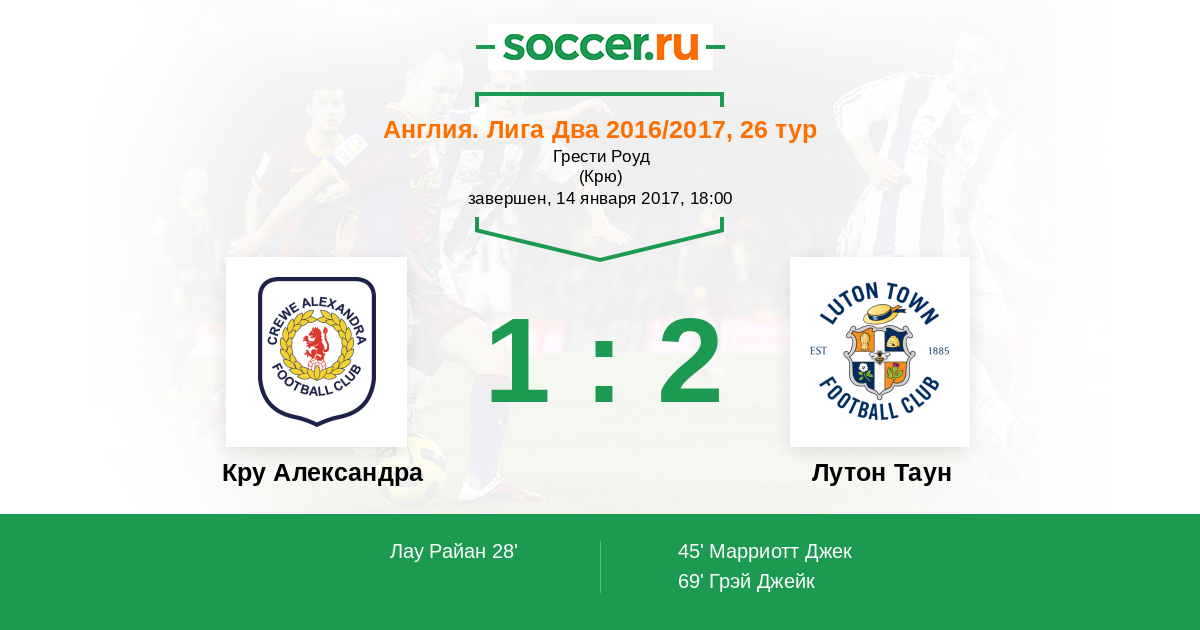 Протокол матча Кру Александра против Лутон Таун