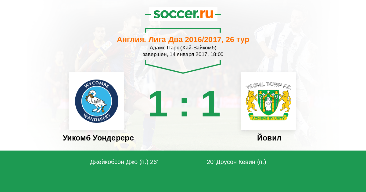 Протокол матча Уикомб Уондерерс против Йовил