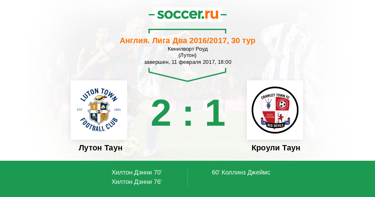 Протокол матча Лутон Таун против Кроули Таун