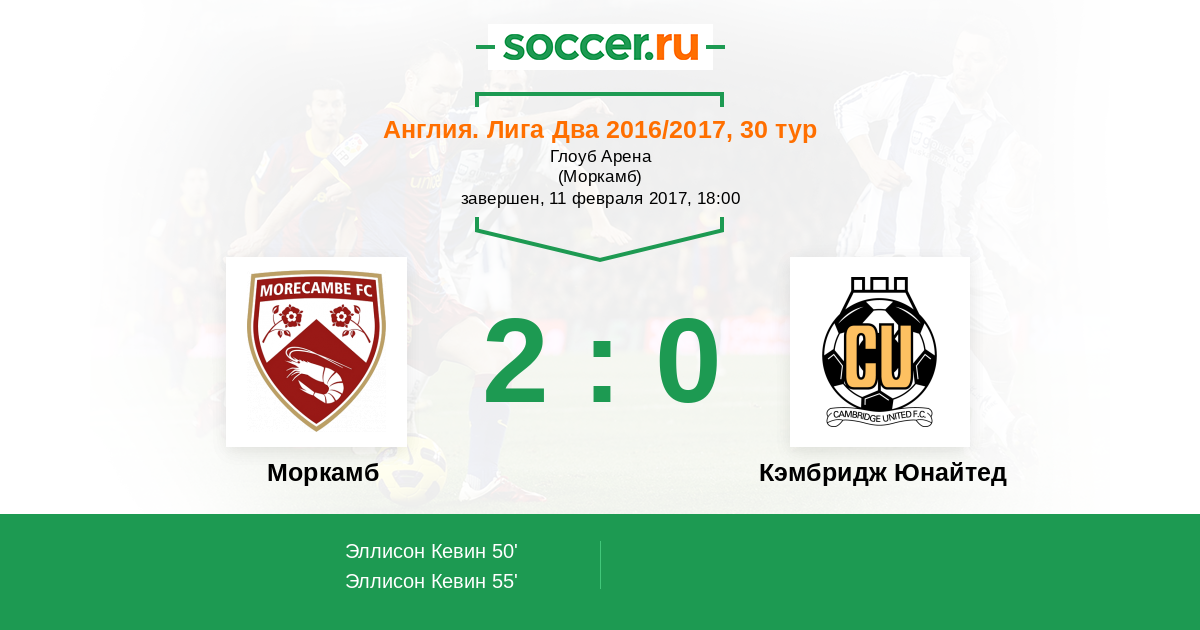 Протокол матча Моркамб против Кэмбридж Юнайтед
