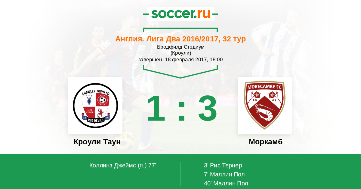 Протокол матча Кроули Таун против Моркамб
