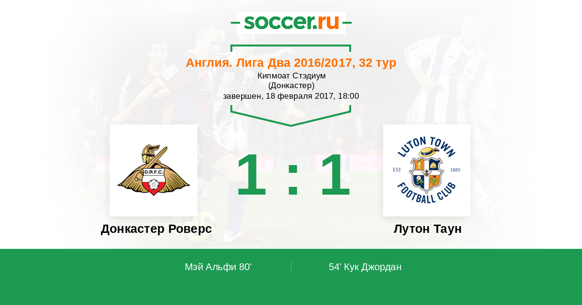 Протокол матча Донкастер Роверс против Лутон Таун