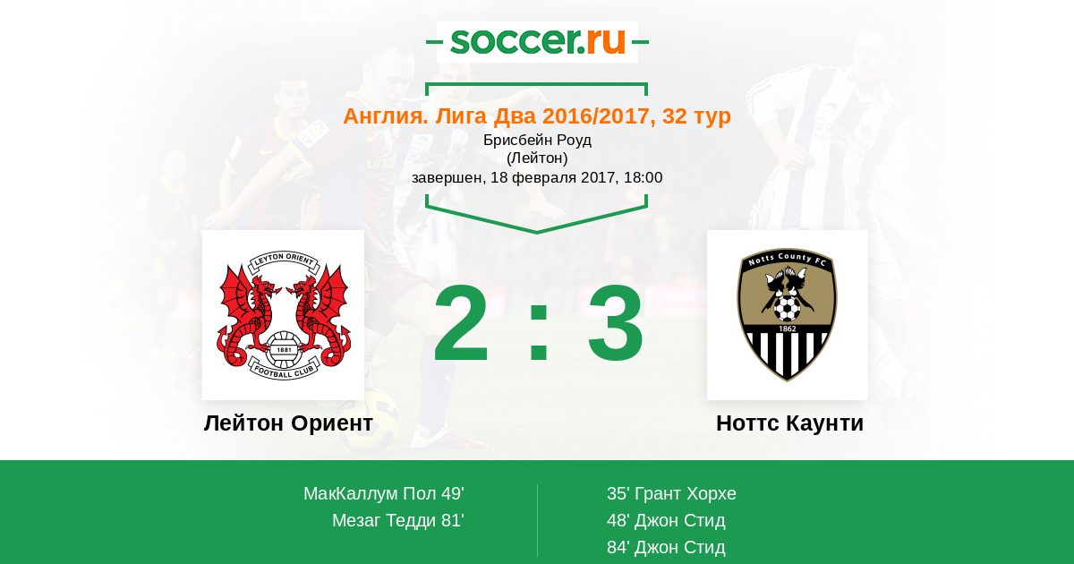 Протокол матча Лейтон Ориент против Ноттс Каунти