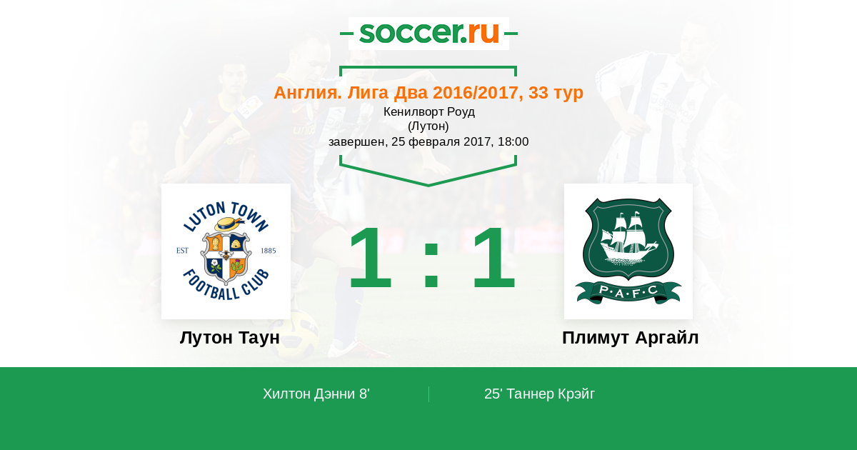 Протокол матча Лутон Таун против Плимут Аргайл